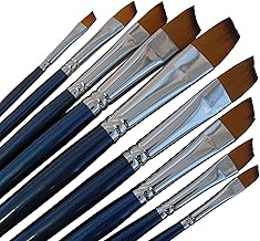 ARTIST PAINT BRUSHES - A - Professional Quality Black Tip, Golden Nylon, Long Handle, Angular Paint Brush Set - Ideal for Acrylic Painting and Oil Painting, and Equally Useful for Watercolor Painting and Gouache Color Painting. - The Natural Characteristics of the Golden Nylon Offers Excellent Liquid Holding Capacity and an Easy, Smooth Flow of Paint. The Fine Angular Head Paintbrushes Have a Luxurious Feel and Excellent Durability, Whilst Good Shape Holding Properties. by Magic Touches