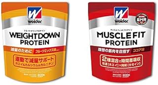 【セット買い】ウイダー ウエイトダウンプロテイン フルーツミックス味 900g (約60回分) 減量プロテイン カルニチン・ヒスチジン配合 & マッスルフィットプロテイン ココア味 900g (約45回分) ホエイ・カゼイン 2種混合ハイブリッドプロテイン 特許成分EMR配合