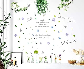 スクウェアショップ ウォールステッカー 風の通り道 A4サイズ×6枚 mws0718 飾り 装飾 飾りつけ 葉 草 木 花 小鳥 花瓶 蝶 北欧
