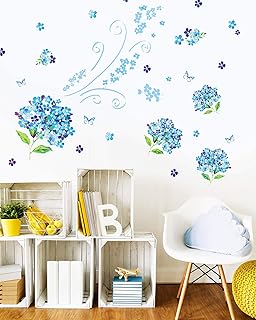 スクウェアショップ ウォールステッカー 青いあじさい 30cm×60cm×3枚 w0117 紫陽花 アジサイ 花 梅雨 夏 虹 雨 室内 飾り かわいい 装飾 飾りつけ リビング トイレ 子供部屋 キッズルーム