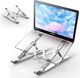 ノートパソコンスタンド 【人間工学設計】PCスタンド コンパクト 7段の高さ調節可能 姿勢改善 腰痛/猫背解消 寝ながら 持ち運び便利 折りたたみ式 滑り止め アルミ合金製 放熱性 軽量 Macbook Air/Macbook Pro/iPad Pro/Notebooks 8~17.3インチまでに対応(シルバー)