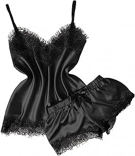 Tengatel サテン パジャマ セクシー 寝巻き 部屋着 ルームウェア レディース セット 可愛い ランジェリー レース カップ付き ナイトガウン ナイトドレス ネグリジェ ルームワンピース ナイトウェア ルームワンピース ズボン ショーツ 夏春秋